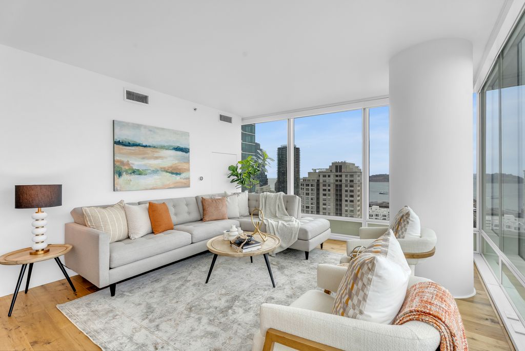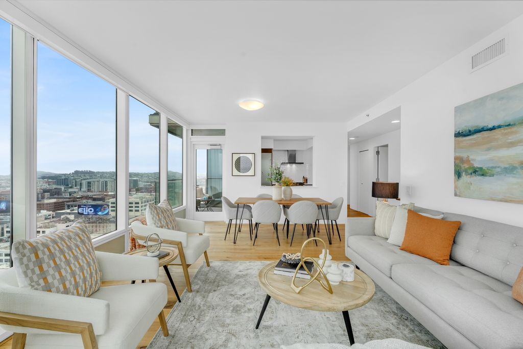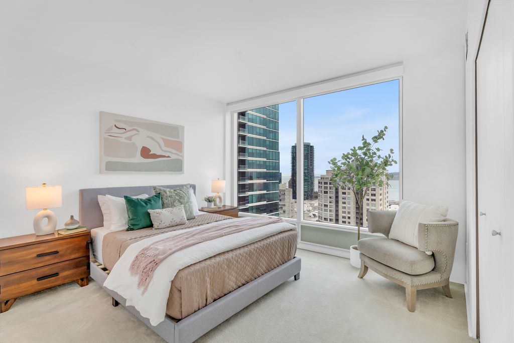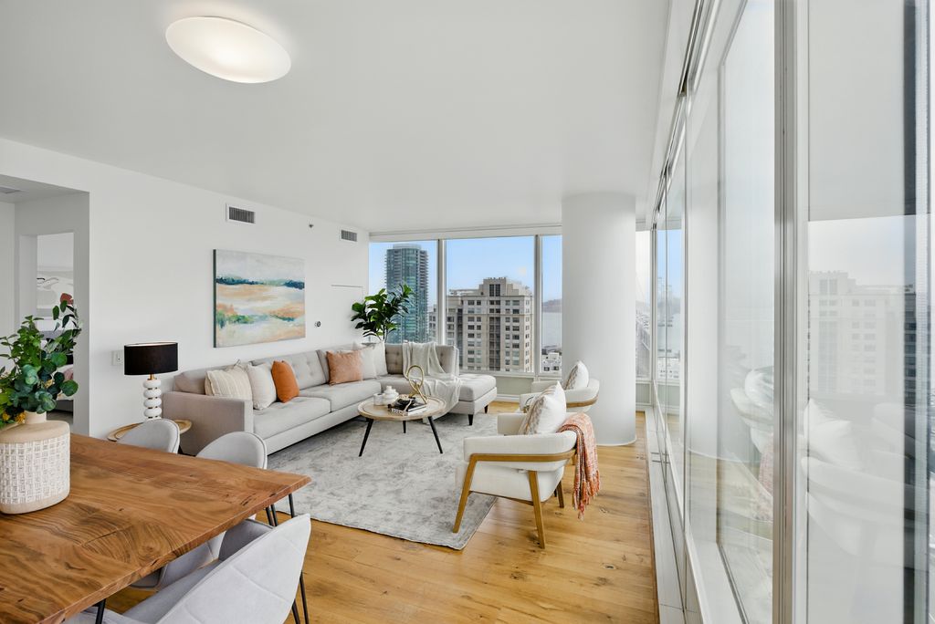 Experience luxury living at its finest in the heart of San Francisco with this stunning 2-bedroom, 2-bath condo at One Rincon Hill. Every detail of this remarkable home has been thoughtfully upgraded to enhance its elegance and functionality. It features upgraded flooring throughout and new automated/motorized blinds in the living room and both bedrooms.